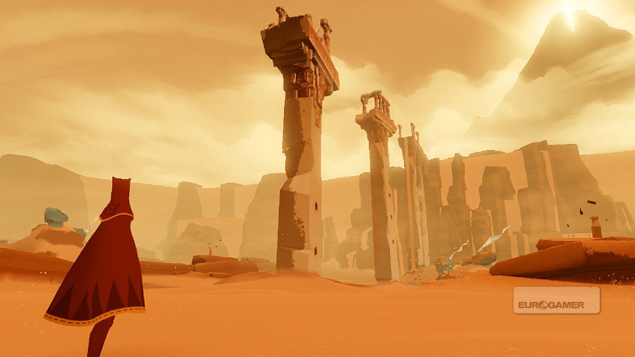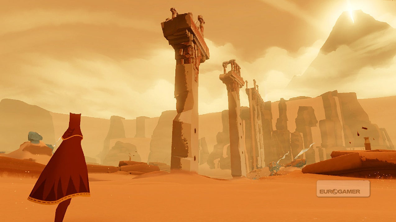 Journey, l'ultima fatica di thatgamecompany, è un titolo focalizzato sul multiplayer. Forse. Da cui l'analogia dell'escursione. Sicuramente, leggere una descrizione di un'idea affascinante come Journey non farebbe felici gli sviluppatori, ma per capire meglio il gioco di cui stiamo parlando possiamo dire che si tratta di un'avventura in terza persona in cui il giocatore esplora un misterioso paesaggio deserto, irto di ostacoli che si frappongono tra il protagonista e il suo obiettivo, una montagna con una potente luce alla sua sommità.